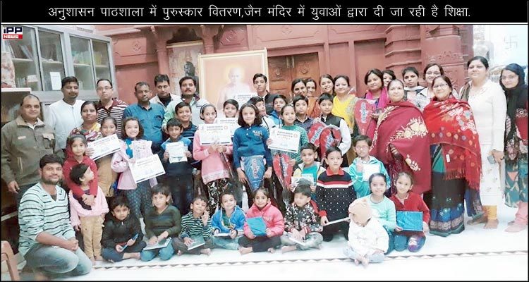 अनुशासन पाठशाला में पुरुस्कार वितरण,जैन मंदिर में युवाओं द्वारा दी जा रही है शिक्षा