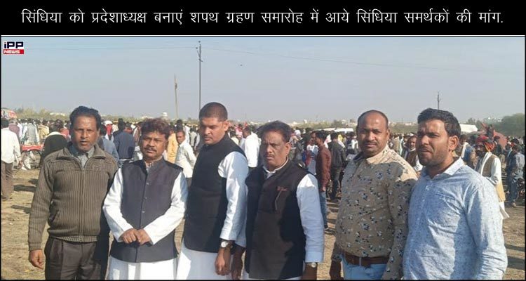 सिंधिया को प्रदेशाध्यक्ष बनाएं शपथ ग्रहण समारोह में आये सिंधिया समर्थकों की मांग