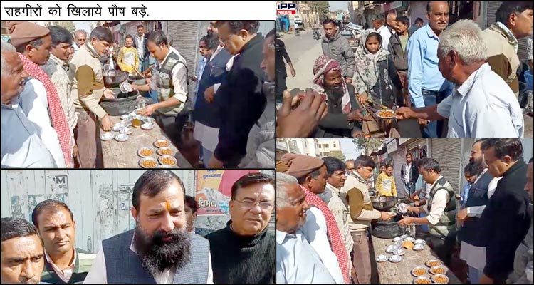 राहगीरों को खिलाये पौष बड़े