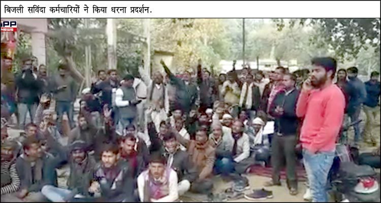 बिजली सविंदा कर्मचारियों ने किया धरना प्रदर्शन